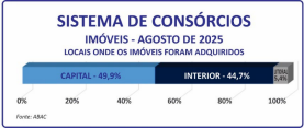 Nos últimos 20 anos, desde 2005, foram contemplados aproximadamente 1,55 milhão de consorciados, que puderam adquirir seus imóveis com finalidades de moradia, negócios ou investimentos. Até agosto deste ano, o consórcio de imóveis contava com 2,50 milhões de participantes ativos, sendo que nesse montante somamos os consorciados contemplados e outros que ainda aguardam a contemplação.